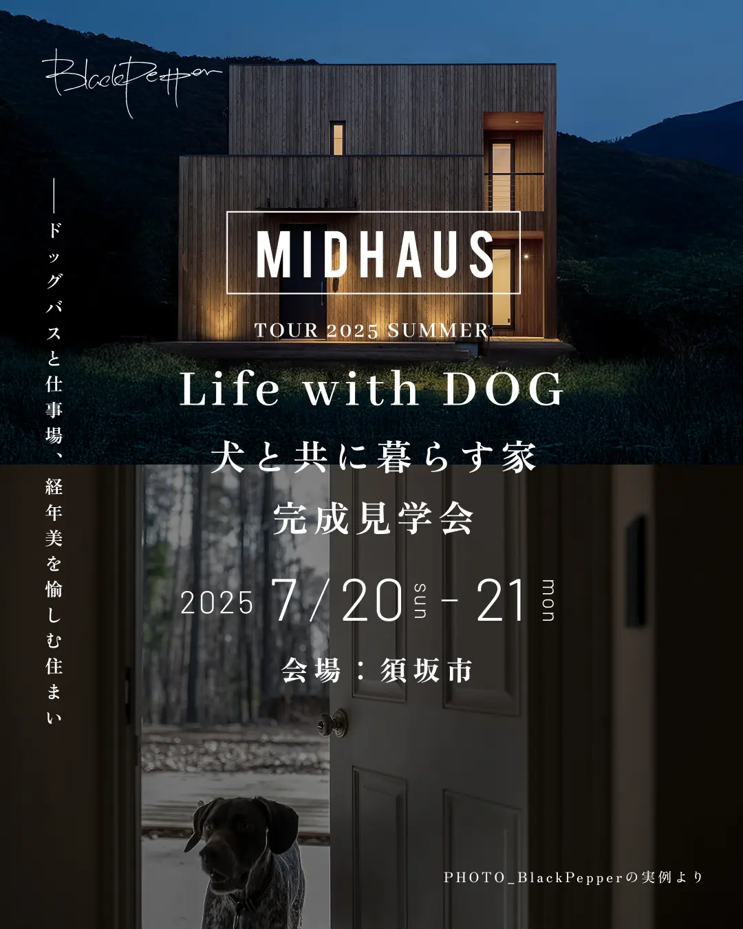 Black Pepper は、「人生にスパイスを」をテーマに、住宅・店舗・ガレージを手がける工務店です。設計から施工までワンストップで行い、店舗設計の意匠性を活かした デザイン性の高い注文住宅 を提供。