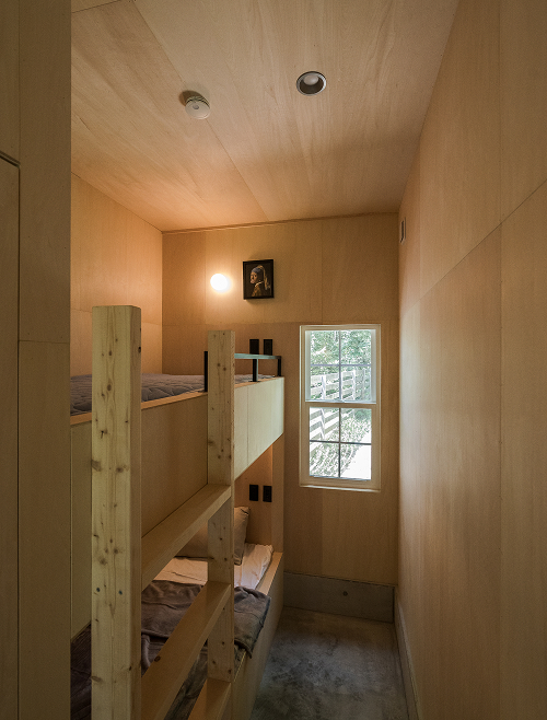 4人が眠れるベッドスペース。2段ベッドや収納と一体にして空間を有効に活用。