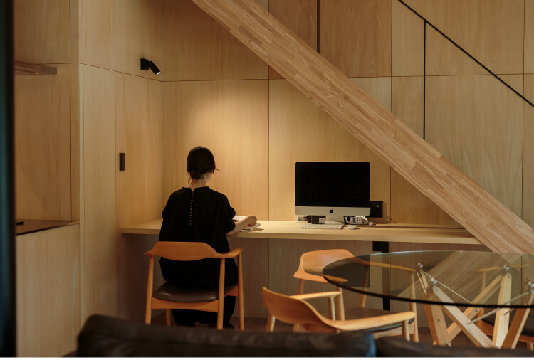手がける仕事はヘアサロンやカフェ、オフィスなどの店舗と住宅がほぼ半々。「店舗と住宅ではデザインに求められるものがまったく違いますが、互いに良い影響を与えてくれます」。店舗で大切なのは店が表現したいこと、伝えたいことをいかにメッセージ性のある空間にするか。当然トレンドのデザインや新しい素材を取り入れる機会も多く、その経験が住宅にも生きています。