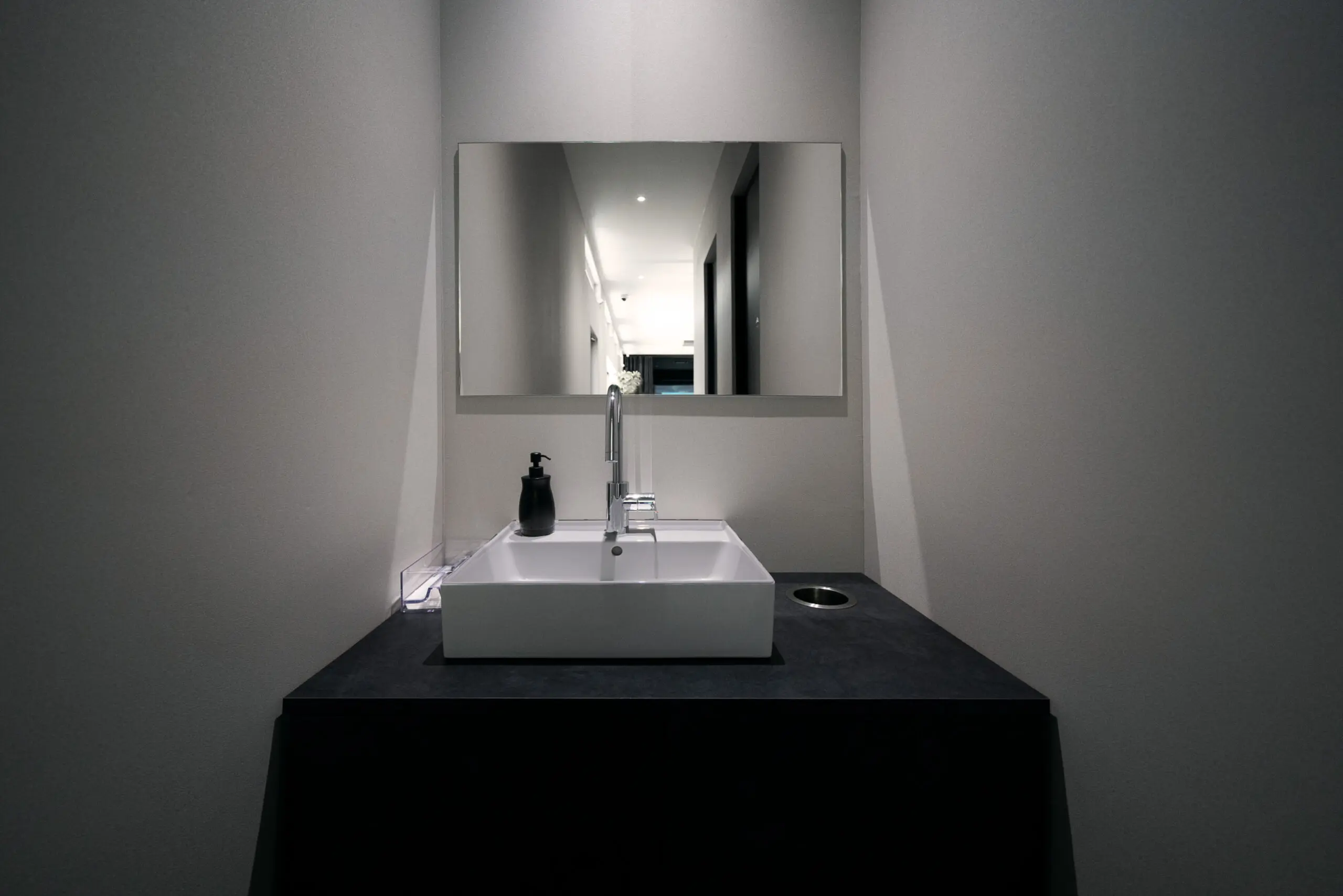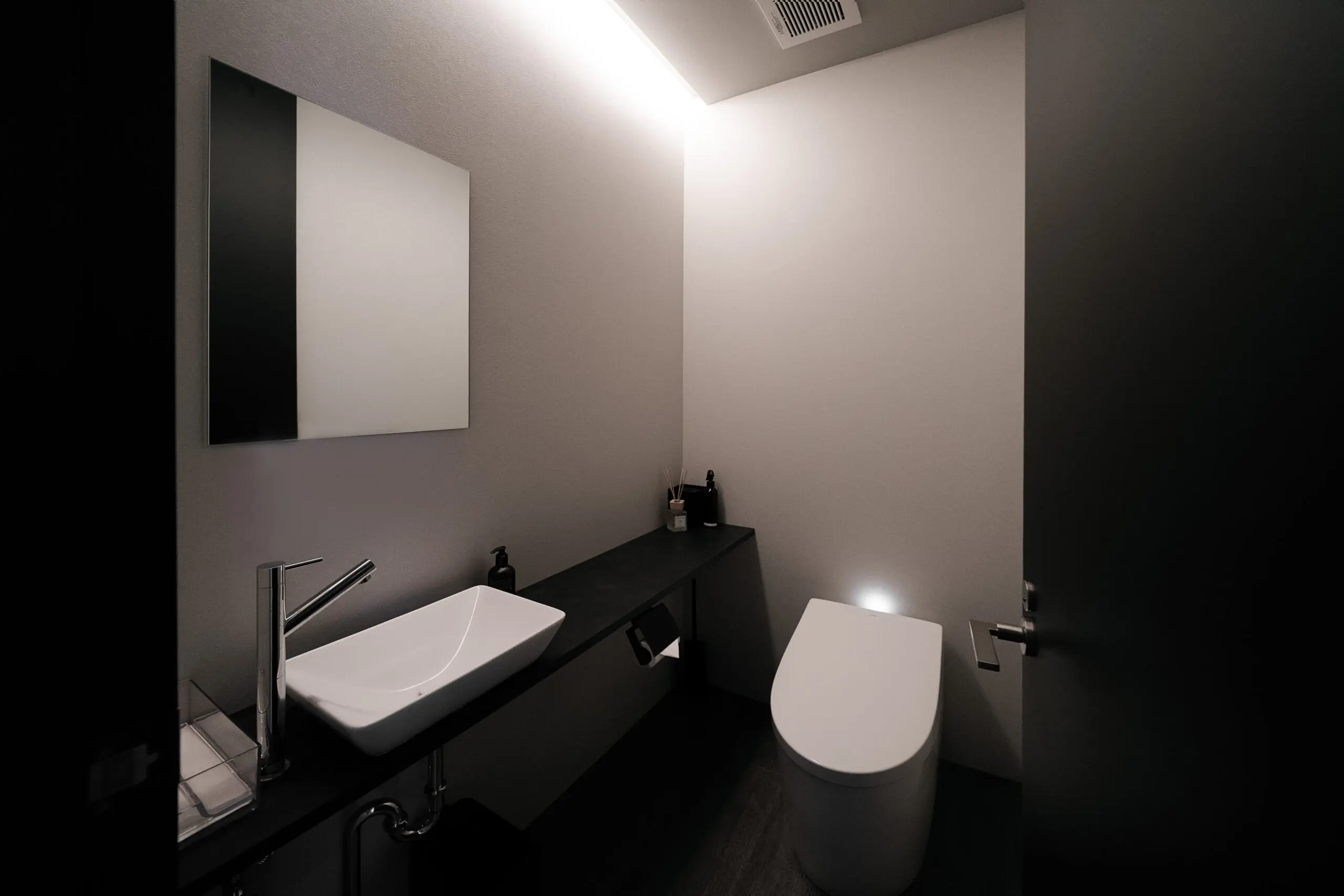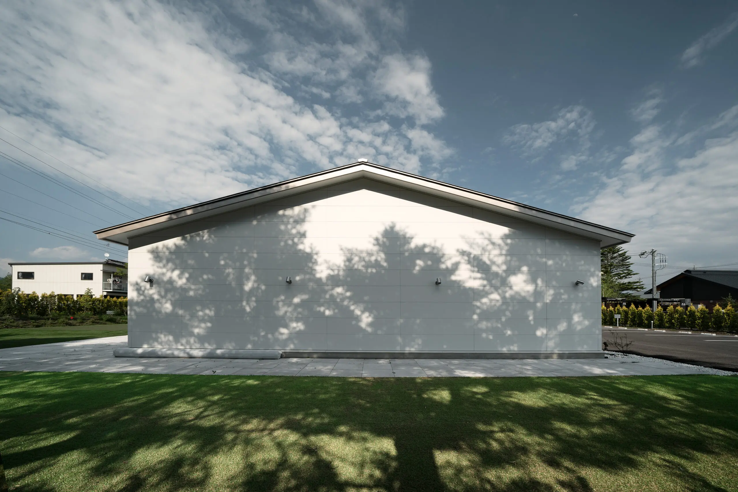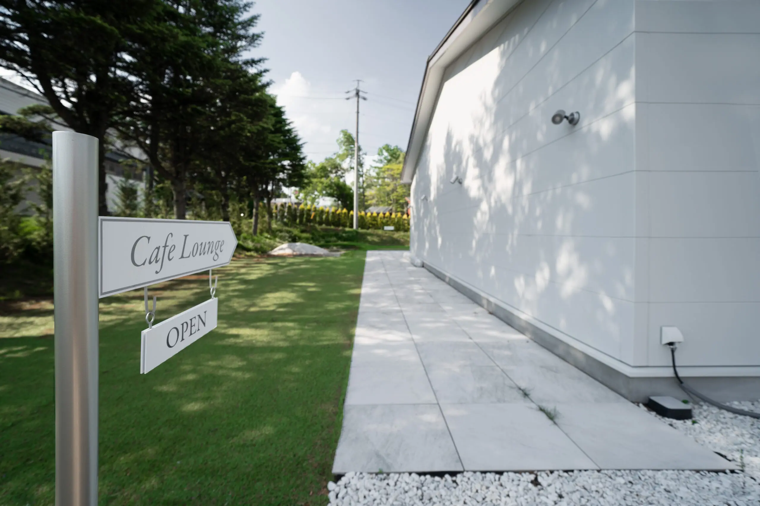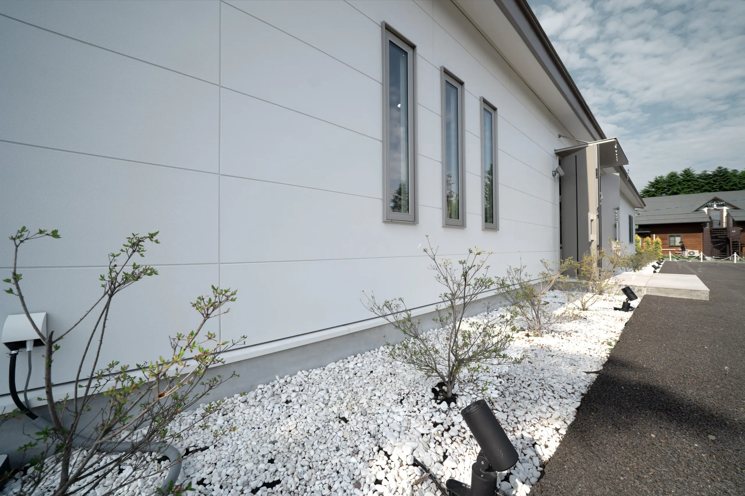 今回、軽井沢という特殊な地域での計画にあたり、町独自に設けられた建築条件に沿って設計を進める必要があった。特に景観保全のため奇抜な建築はNGだが、店主からすれば国道からも目立つ店舗にしたい。思考を重ねた結果「真っ白の平屋建て」というシンプルな外観の方が目立つのではないかという発想に至った。外観は白をベースとしており、大きな窓を設けていないのでプライベート感の強い店舗計画だ。インテリアは白とグレーを基調とした落ち着いたデザイン、コントラストの違いをうまく活用し空間ごとの区別をしている。