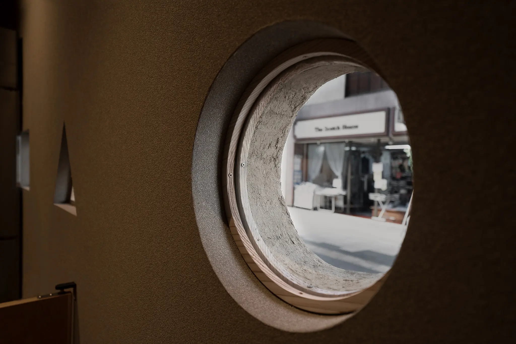 さらに、狭間をイメージした小窓には、「まるさんかくしかく」という、世界中の人々が共通認識できる形を採用。これは、記憶に残る象徴的なディテールであり、外国人にとっても心の奥底をくすぐられるポイントになるのではないだろうか。