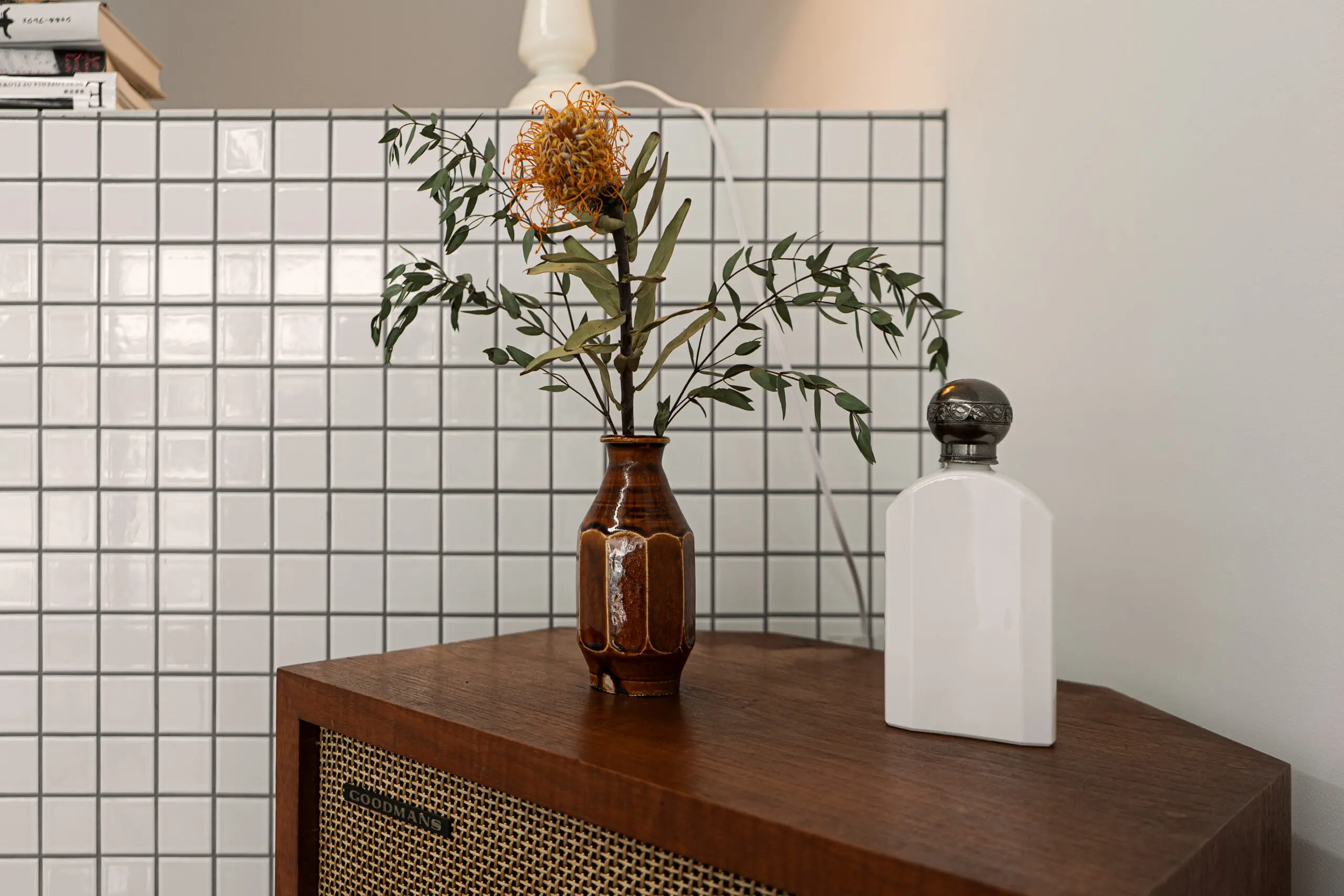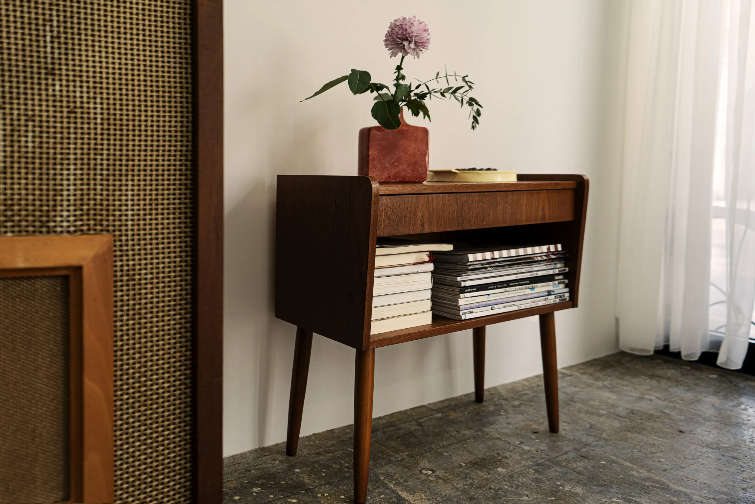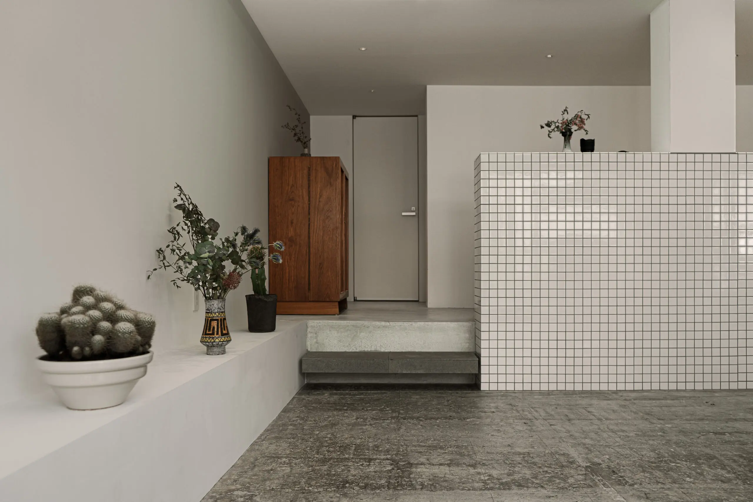 歴史あるテナントを活かしつつ、店内はホワイトカラーと昼光色の照明で統一し、明るく都会的な印象に仕上げた。シンプルな内装が、オーナーこだわりの家具やインテリアを際立たせ、個性を演出。