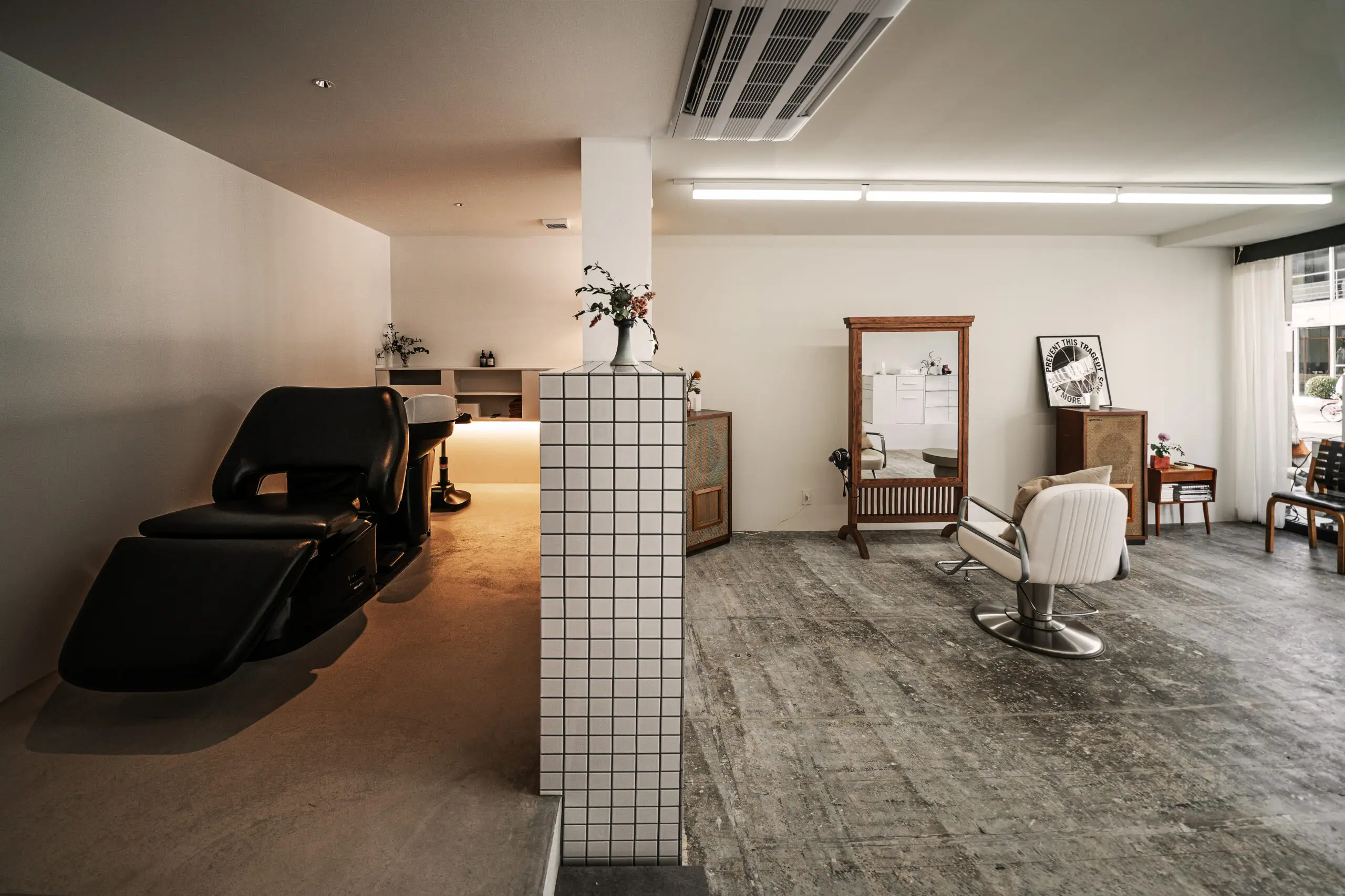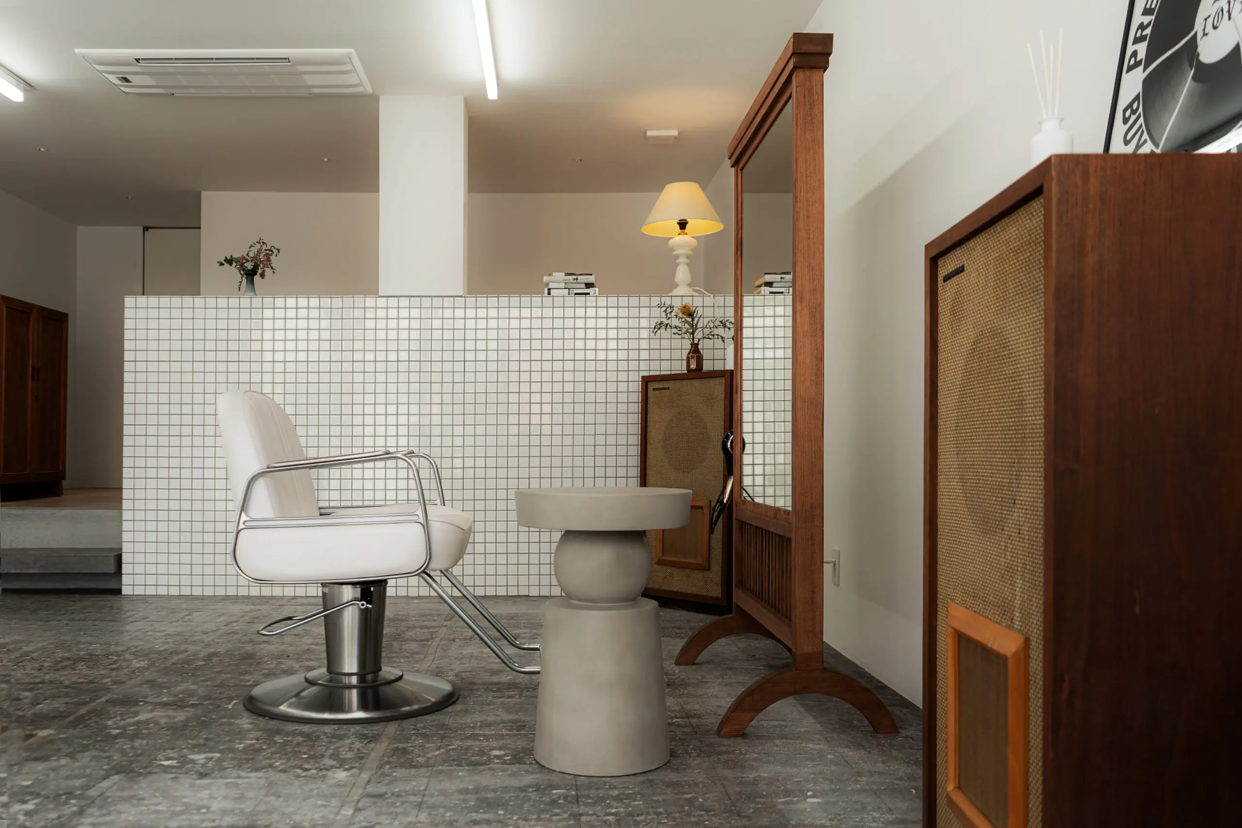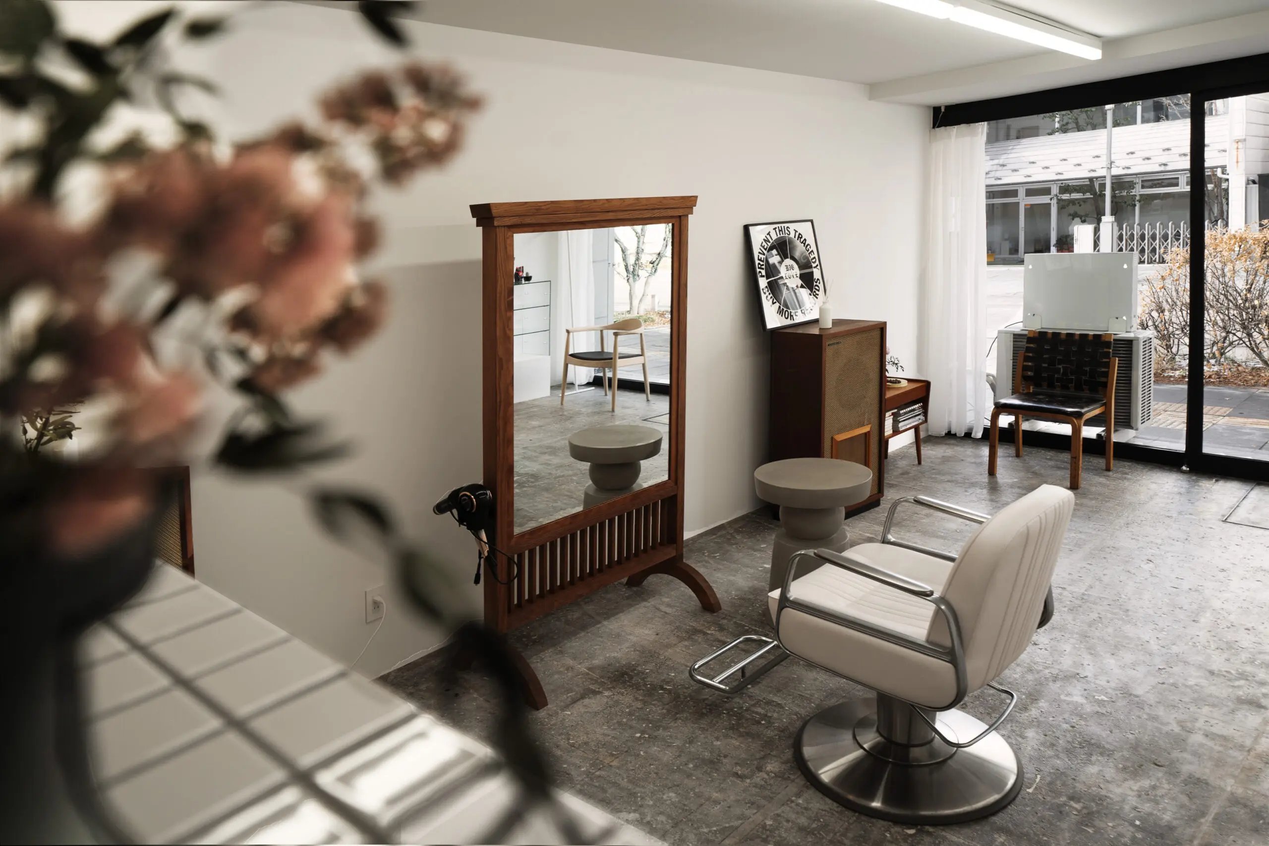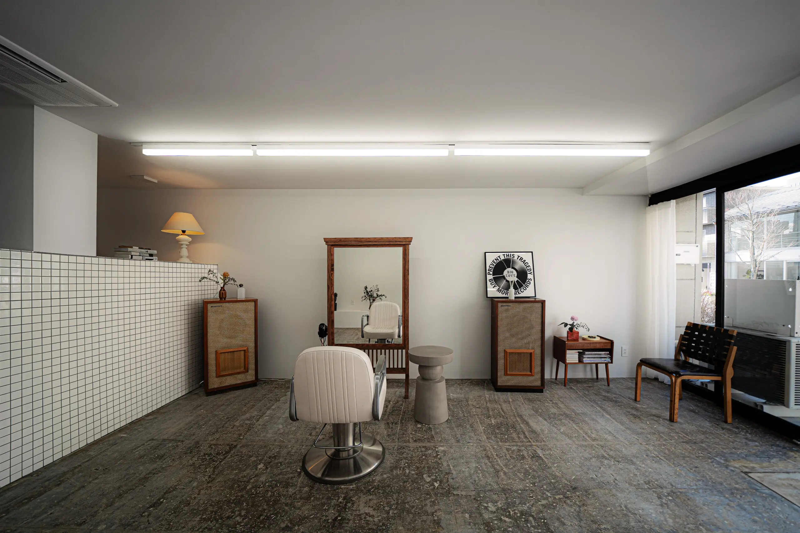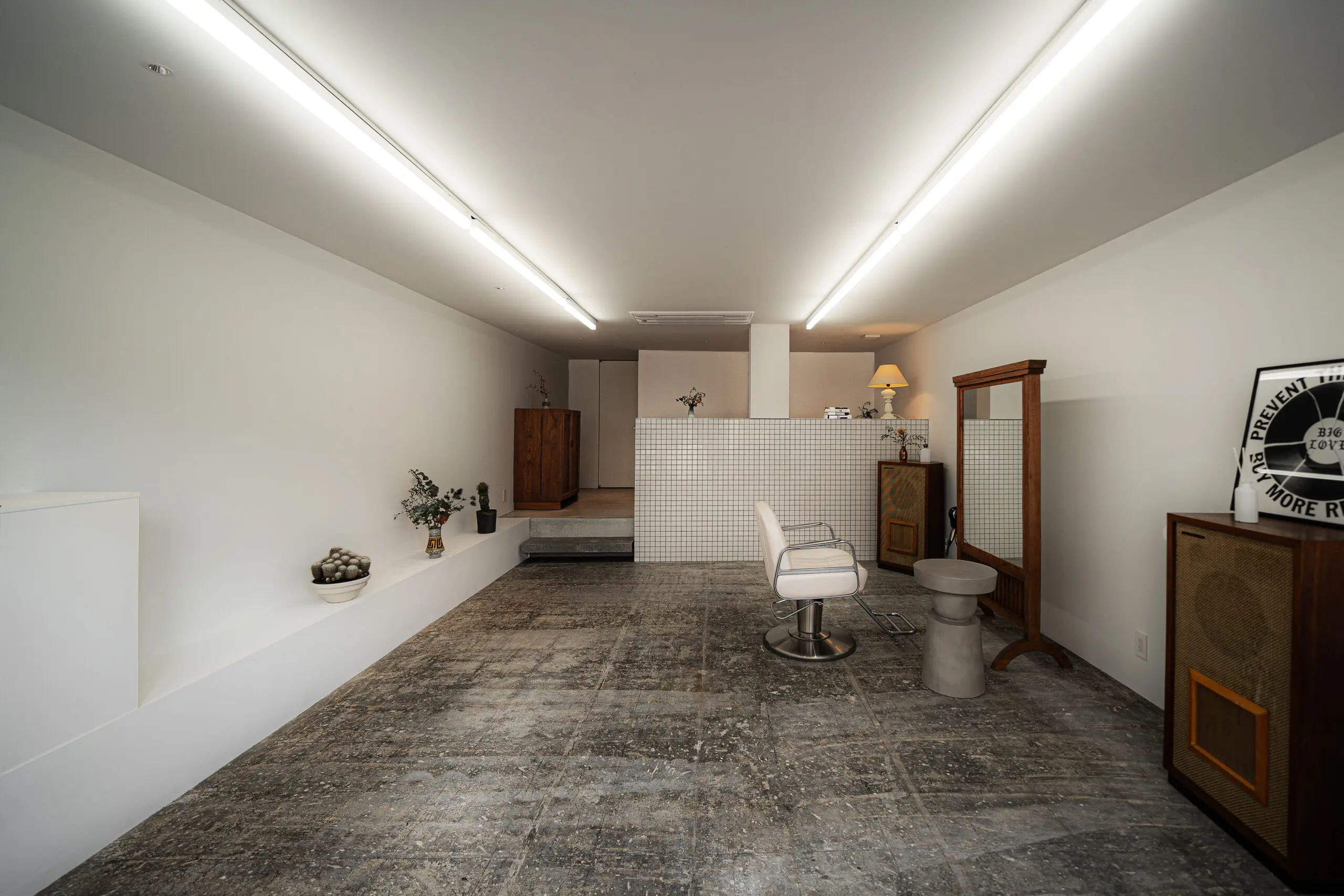 さらに、椅子や鏡は移動可能なデザインとし、美容院としての機能性を保ちつつ、フレキシブルな空間活用が可能な設計となっている。